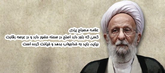 علامه مصباح اظهار داشت: کسی که باور دارد اصلح در صحنه حضور دارد و در عرصه رقابت بیاید، باید به خداجواب بدهد و خیانت کرده است.